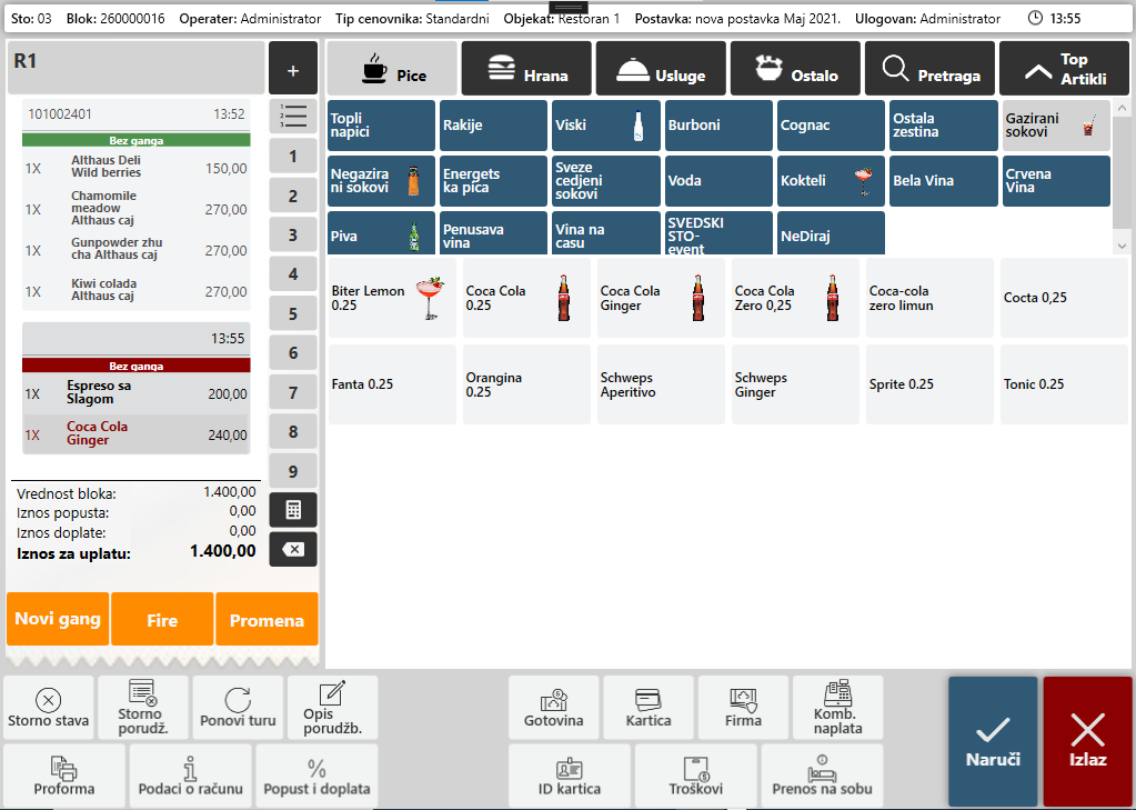 POS sistem za ugostiteljstvo je potpuno grafički organizovan čime je rad operatera neuporedivo brži i efikasniji.
