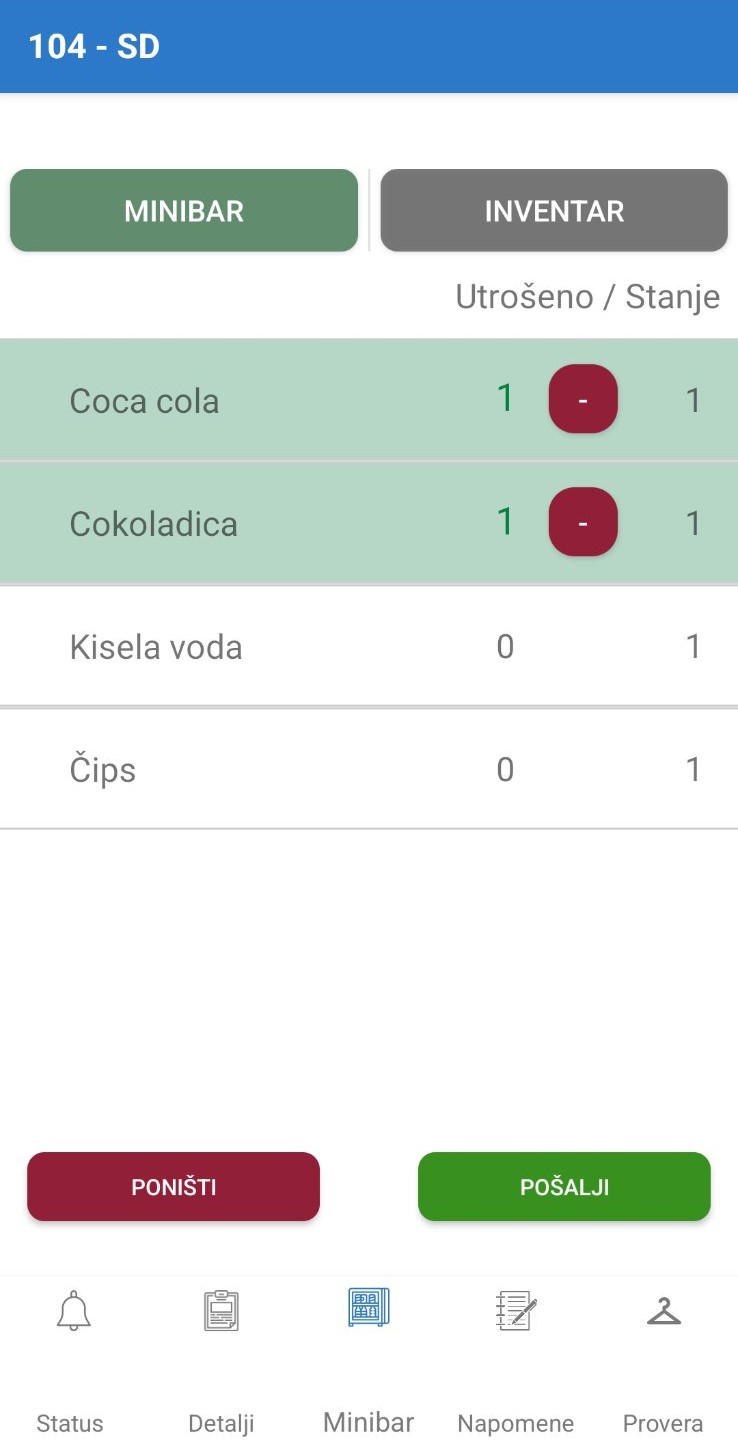 Nema potrebe da sobarice javljaju recepciji potrošnju mini-bara; one mogu da završe proveru mini-bara u par klikova, direktno dok su u sobi, putem mobilne aplikacije ProSoft GO! i zaduženje je automatski vidljivo na recepciji.